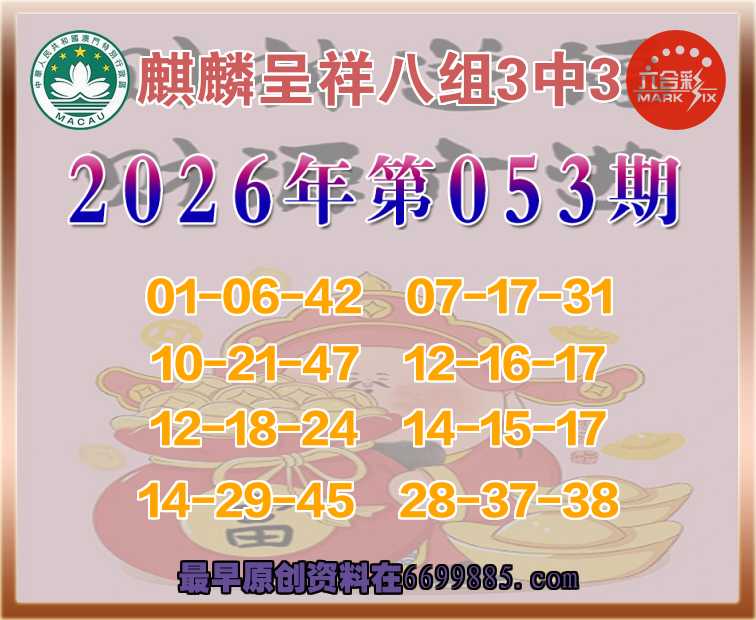 062期:【麒麟呈祥】【八组3中3】超级高手